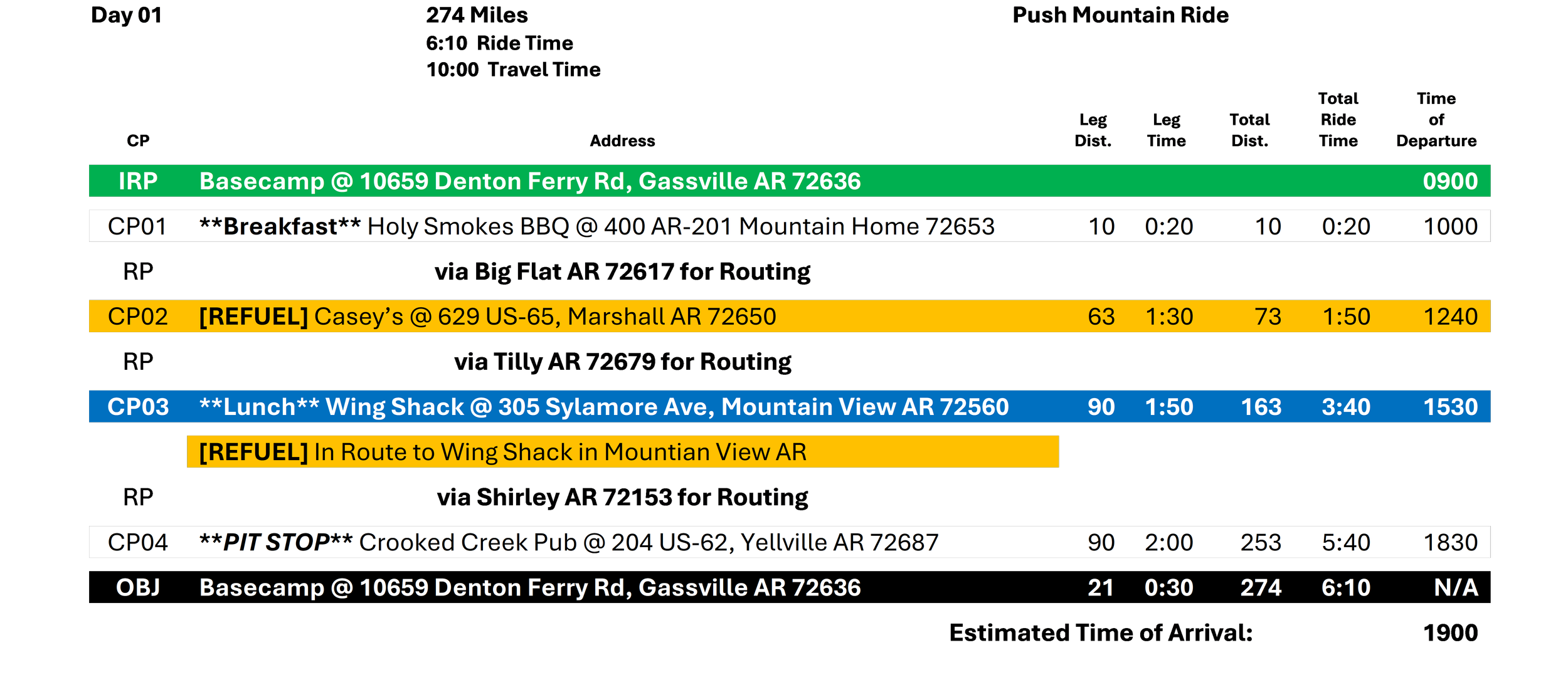 CP01: Breakfast Stop @ 0920 CST